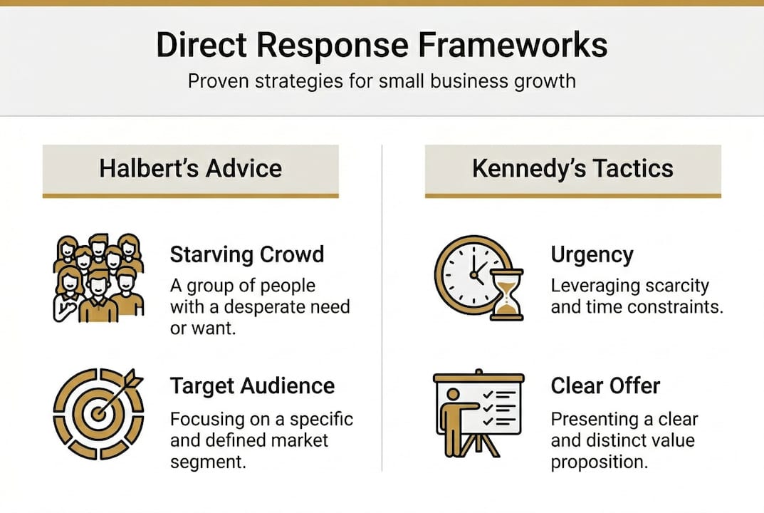 Two legends of direct response marketing, Gary Halbert and Dan Kennedy, gave us frameworks that still hold up today.