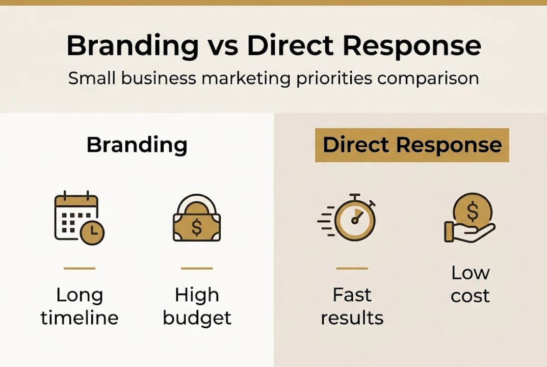 The direct response automation results we've seen across dozens of small businesses confirm it: DR-first doesn't just pay the bills faster, it builds credibility faster too. Reframe branding as a future priority. Right now, your job is survival and growth. Direct response is how you get there.